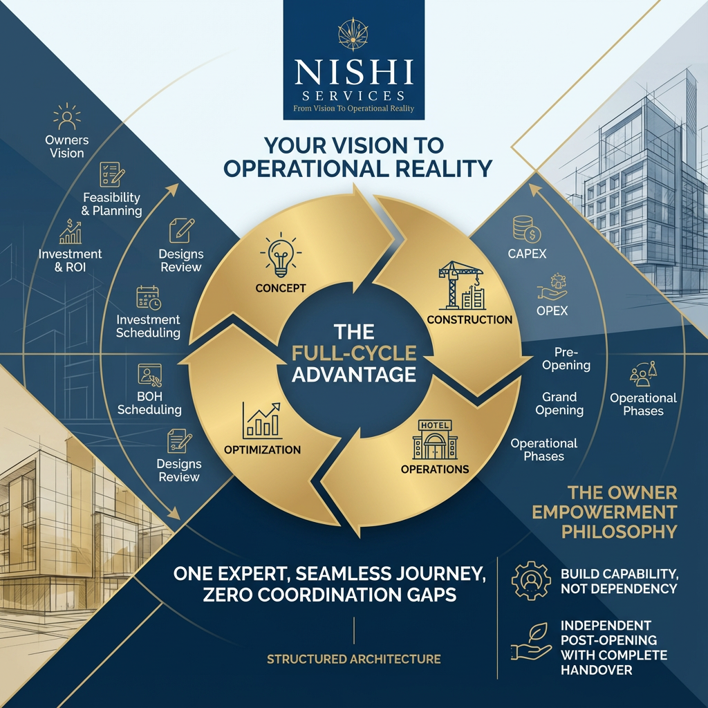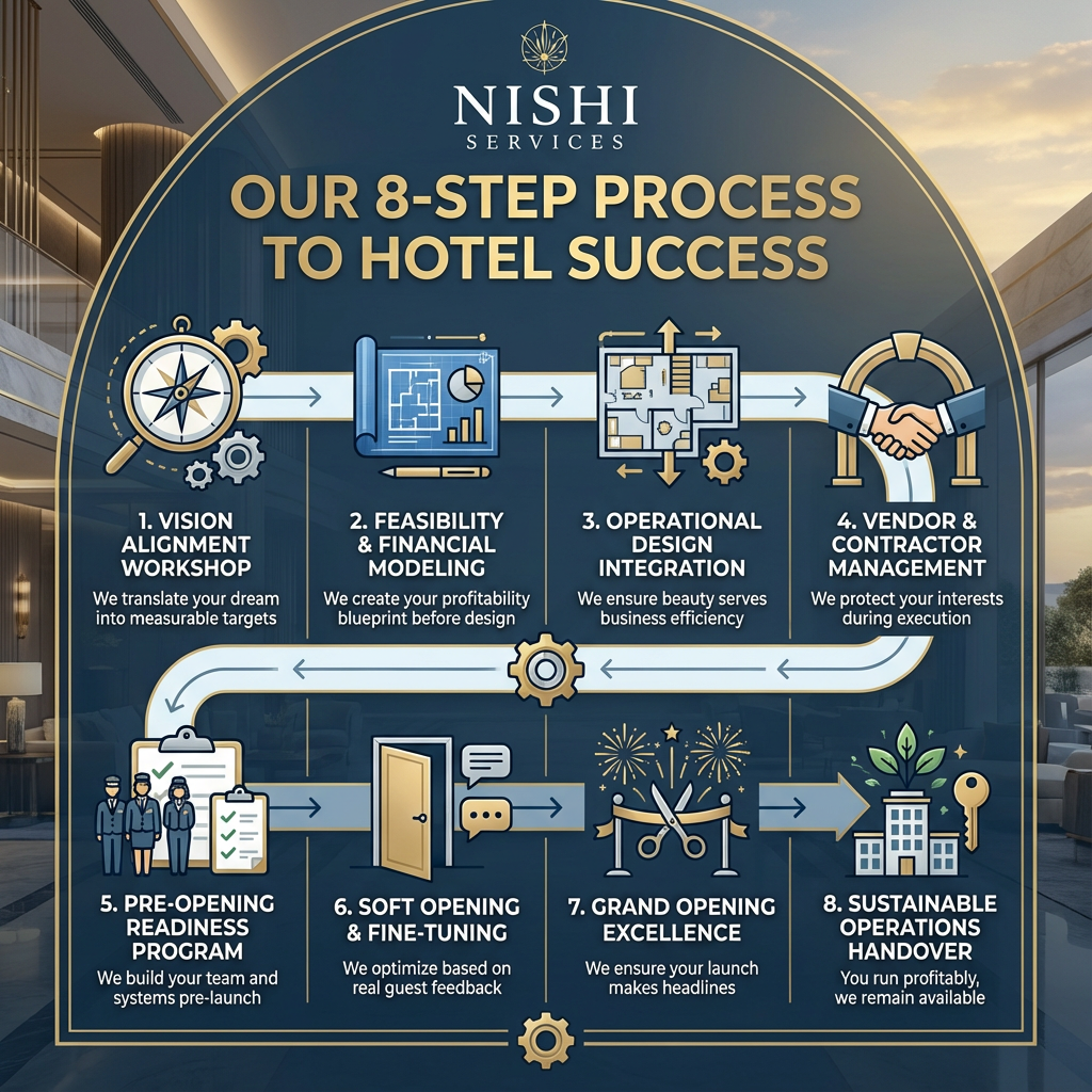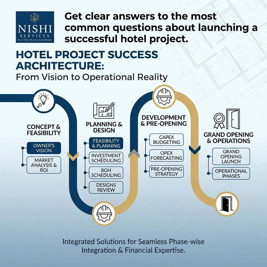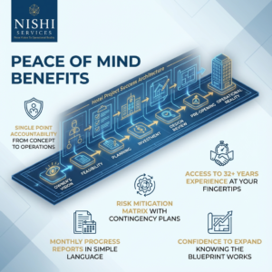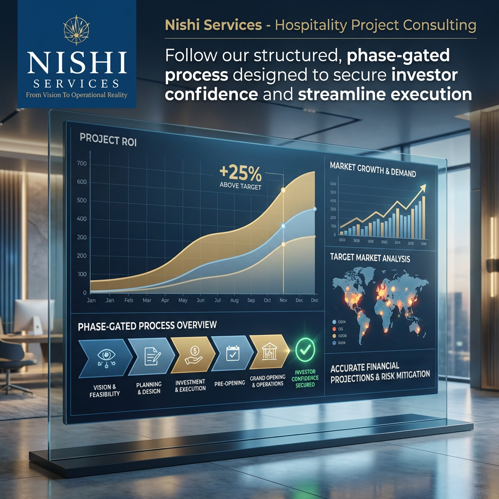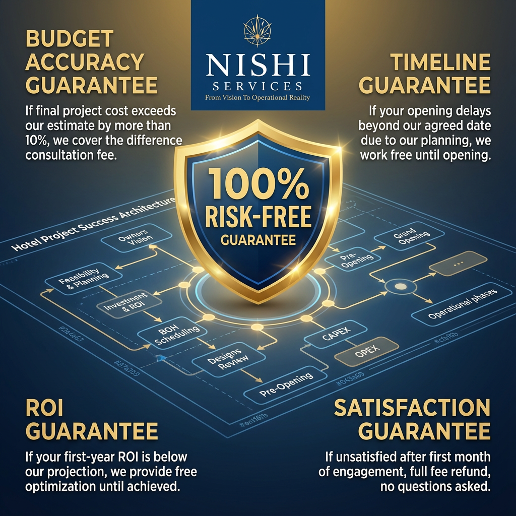 Unlock Exclusive Investment Insights Know Your Numbers Before You Start Building "Overall Investment & ROI" 32+ Years Transforming Hotel Dreams Into Bankable Assets. Get Clarity on Budget, Timeline, and ROI Before Your First Brick is Laid Your Vision → Planning → Design Reviews → Pre-opening → Operational Ready What Our Hotel Investors Actually Achieve Nishi Services Highlights Complete Hotel Project Simplified We Assume the Risk So You Don't Have To "Prefer to talk immediately? Call Amit Directly: +91 98931 33318" Schedule Your Strategic Briefing Unlock Exclusive Investment Insights